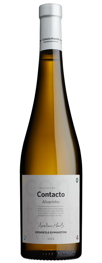 The 2024 Contacto Alvarinho is part of a joint venture with the Symington family, but the brand has existed since 2008, and the Symingtons have had 50% of the brand since 2023. The concept here comes from the skin contact, which varies depending on the acidity and the ripeness; in very warm years, they avoid full skin contact because it lowers acidity. Here we're talking 12 hours at 12 degrees Celsius for 70% of the grapes, so it's not at all an "orange" wine. In fact, the color is as pale as the Muros Antigos. The difference here is the soils where the grapes grow—in the Quinta da Torre, the soils are alluvial (still granitic) but with a little more clay (8%) and more resistance to drought. It started quite shy, but the wine is more aromatic and floral; it has more volume and is more concentrated, because of the soils and the skin contact. It comes in at 12.5% alcohol, a pH of 3.3 and seven grams of acidity—a little of those factors is what happens with the alluvial soils, but the higher pH is because there's more potassium for the grapes and the acidity is also higher; but it's more because of the temperature, which in the Quinta da Torre, a valley, is lower at night than in the slopes from Melgaço, where the grapes from Muros Antigos come from. Drink Date: 2025 - 2030